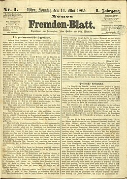 | old austrian newspaper | http://anno.onb.ac.at/cgi-content/anno?aid=nfb&datum=18650514&seite=1&zoom=33 | Autor/-in unbekannt Unknown author | Datei:Neues Fremden-Blatt.jpg |
