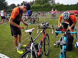 | Einrichten der Wechselzone beim Neufelder Triathlon , 2018 | Eigenes Werk Originaltext : selbst fotografiert | Giacomo1970 | Datei:AUT Neufelder Triathlon Wechselzone 2018.jpg | |