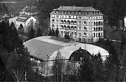 Kurhotel Stefanie (links), Hotel Neuhaus (rechts), Aufnahme um 1900