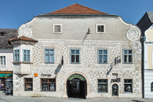 | Das sogenannte „Sgraffitohaus“ an der Adresse Hauptplatz 11 in der niederösterreichischen Stadtgemeinde Neunkirchen . Ein Renaissancehaus mit reicher Sgraffitodekoration aus der 2. Hälfte des 16. Jahrhunderts an der Hauptfassade, Runderker und rundbogigem Portal mit der Jahreszahl 1591. | Eigenes Werk | C.Stadler/Bwag | Datei:Neunkirchen (NÖ) - Sgraffitohaus (Hauptplatz 11).JPG | |