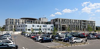 | Nordwestansicht des Landesklinikum der Niederösterreichischen Landeskliniken-Holding in der niederösterreichischen Stadt Neunkirchen . Das mit einem Kostenaufwand von rund 160 Mio. Euro errichtete Krankenhaus (367 Betten, fünf Operationssäle) wurde nach einer Bauzeit von rund 2,5 Jahren (Grundsteinlegung 2013) am 3. November 2015 eröffnet. In einer 2. Bauphase erfolgte 2016 der Abriss der alten Gebäude und die Errichtung der Außenanlagen. | Eigenes Werk | C.Stadler/Bwag | Datei:Neunkirchen - Landesklinikum.JPG |