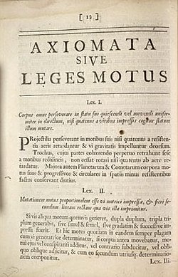 Im Jahr 1687 erschien Isaac Newtons Werk Philosophiae Naturalis Principia Mathematica (lat.; ‚Mathematische Prinzipien der Naturphilosophie‘), in dem Newton drei Grundsätze der Bewegungslehre formuliert, die als die Newtonschen Axiome, Grundgesetze der Bewegung, Newtonsche Prinzipien oder auch Newtonsche Gesetze bekannt sind. Sie werden in Newtons Werk mit Lex prima, Lex secunda und Lex tertia (‚Erstes/Zweites/Drittes Gesetz‘) bezeichnet, oder zusammengenommen mit axiomata, sive leges motus (‚Axiome oder Gesetze der Bewegung‘).