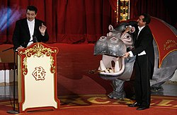 | Verleihung des Nestroy-Theaterpreises 2009 : Die Moderatoren Nicolaus Hagg und Christoph Wagner-Trenkwitz ( Circus Roncalli auf dem Wiener Rathausplatz ). | Eigenes Werk | Manfred Werner - Tsui | Datei:Nestroy 2009 (06), Wagner-Trenkwitz, Hagg.jpg | |