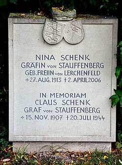 | grave of Nina Stauffenberg and memorial to Claus von Stauffenberg at Kirchlauter , Bavaria | Eigenes Werk | CSvBibra | Datei:NinaStaufgrave.jpg | |