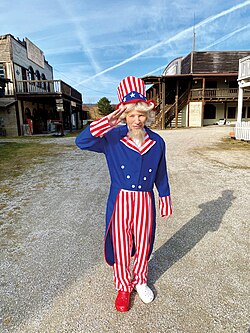 | Max Grodénchik as Uncle Sam in a behind-the-scenes photograph taken during the shooting of 'Hacking at Leaves', No Name City, Austria, 2021 | Eigenes Werk | Grenz | Datei:Max Grodénchik as Uncle Sam in a behind-the-scenes photograph taken during the shooting of 'Hacking at Leaves', 2021.jpg | |