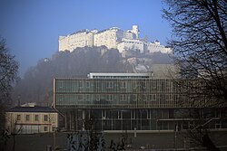 - ↑ Robert Kriechbaumer: Umstritten und Prägend. Kultur- und Wissenschaftsbauten in der Stadt Salzburg 1986–2011. Böhlau Verlag, Wien/Köln/Weimar 2012, ISBN 978-3-205-78860-7, S. 215.