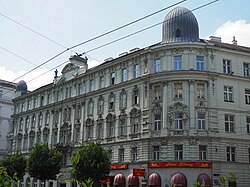 Hinter diesem Bürohaus entstand zur Weltausstellung 1873 das nicht mehr bestehende Römische Bad.