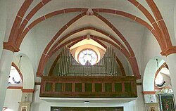 | Kath. Stadtpfarrkirche St. Martin (Ferlach), Innenansicht nach Westen zur Orgelempore | Eigenes Werk | Rollroboter | Datei:Ferlach Pfarrkirche Orgelempore.jpg | |