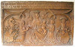 | Pfarr- und Stiftskirche Zu Unserer Lieben Frau (Laufen an der Salzach, Landkreis Berchtesgadener Land, Oberbayern). Epitaph für Marx von Nussdorf und seine Gemahlin Spornella von Seben (um 1479). | Eigenes Werk | Dark Avenger | Datei:Laufen Pfarrkirche 9.jpg | |