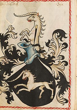 | Wappen der Nussdorff . | Bayerische Staatsbibliothek Cod.icon. 312 c 1450 – 1480 | verschiedene unbekannte Künstler | Datei:Nussdorf Scheibler20ps.jpg | |