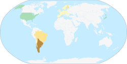 Nutrias gelten heute als in weiten Teilen Nordamerikas und Eurasiens eingebürgert. Der Bestand in Eurasien ist auf aus Pelztierfarmen entflohene Tiere wie auch auf bewusste Auswilderungen zurückzuführen. Die Haltung in Europa begann ca. 1890 in Frankreich, erste Farmen in Deutschland bestanden ab 1926.[3] Seit ca. 1930 wird bereits mit Populationen in Deutschland gerechnet, die auf verwilderte Tiere zurückgehen.[4] Der Hauptabnehmer für Nutriafelle war nach dem Zweiten Weltkrieg die Bundesrepublik Deutschland. Gegen Ende des 20. Jahrhunderts wandte sich das Modeinteresse auch in Deutschland vom Nutriapelz ab, gleichzeitig ging der deutsche Pelzabsatz ganz erheblich zurück. Entkommene Tiere konnten sich stark vermehren.