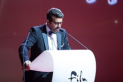| Oğuz Galeli , Laudator für Bülent Sharif , bei der Vergabe des Wiener Filmpreises am Filmball Vienna 2016 im Rathaus in Wien , Österreich . | Eigenes Werk | Manfred Werner - Tsui | Datei:Vienna Film Award 2016 01 Oğuz Galeli.jpg |