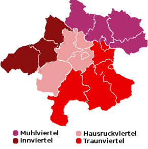 | Karte von Oberoesterreich mit eingezeichneten Vierteln und Legende | File:Karte Aut Ooe Hausruckviertel.png | plp / Ro mailson | Datei:Karte Oberoesterreich Viertel mit Legende.png | |