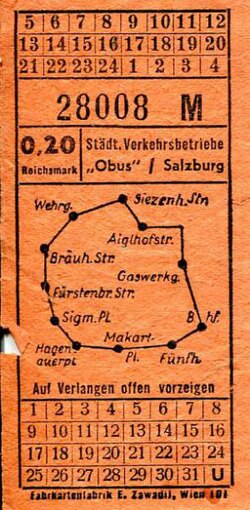| Fahrkarte des Oberleitungsbus Salzburg | https://www.eisenbahn-sammlershop.de/Fahrkarten/Fahrschein-O-Bus-Salzburg.html | unbekannt | Datei:Fahrkarte Obus Salzburg.jpg |