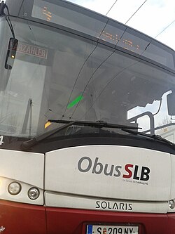 | Solaris Trollino 18 AC aus Salzburg mit Obus SLB Logo. | Eigenes Werk | Obussalzburg | Datei:Front Solaris Trollino 18 AC Salzburg.jpg | |