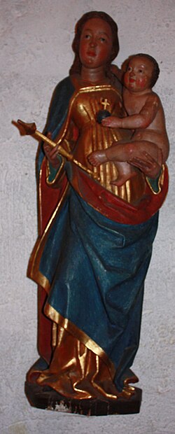 | Holzstatue "Maria mit Kind", geschnitzt Ende des 15. Jahrhunderts. Die Statue wurde in der Barockzeit stark überarbeitet. Die Statue befand sich ursprünglich in der Wegkapelle beim Schluchtwirt zwischen Millstatt und Obermillstatt . Die Kapelle wurde vom Herzogbauer Mathias Oberzaucher gegen Ende des 19. Jahrhunderts gestiftet. | Eigenes Werk | JJ55 | Datei:Millstatt - Stift - Madonna.jpg | |