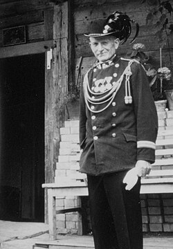 | K&K Traditionsverein Obermillstatt . Der früher als Kriegerverein bezeichnete Verein, wurde 1908 gegründet. Diese Aufnahme stammt vermutlich aus dem Gründungsjahr (Datierung anhand von Beifunden). Obermillstatt ist ein Dorf in der Gemeinde Millstatt am Millstätter Berg (Hochplateau) über dem Millstättersee in Kärnten / Österreich / Europäische Union . Diese Uniform wurde von den Landesschützen (ab 1917 Kaiserschützen ) getragen. Aufnahmeort ist vermutlich die Wiese neben der Linde an der Straße nach Lammersdorf in der Nähe des heutigen Sportplatzes. | Public domain because its copyright has expired. Permission: Sammlung J.P. Adlbrecht. Scanned by Joadl Gallery . If you use this photograph outside Wikimedia, I would highly appreciate if you let me know by email or on my talk page , as I'm curious where my work is used. Please choose a Free license to abide by. If you would like to use this image in a way which is incompatible with the given Free licenses (de: Freie Inhalte ), please contact me. | Autor/-in unbekannt Unknown author | Datei:Kriegerverein Obermillstatt 1908 gegründet.jpg | |