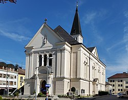 | Oberndorf bei Salzburg - Pfarrkirche hl. Nikolaus | Eigenes Werk | Michael Burgholzer | Datei:Oberndorf, Pfarrkirche (1).jpg | |