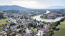 | Lage von Oberndorf bei Salzburg im Bezirk Salzburg-Umgebung | ||