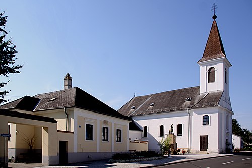 | Filialkirche und Pfarrhof in Oberrabnitz , Gemeinde Draßmarkt im Bezirk Oberpullendorf , Burgeland , Österreich ) | Eigenes Werk | Steindy ( talk ) 20:05, 24 August 2010 (UTC) | Datei:Oberrabnitz, Filialkirche und Pfarrhof.jpg | |