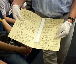 | Die erste Aufzeichnung des Ohmschen Gesetzes in Georg Simon Ohms Laborbuch, heute im Archiv des Deutschen Museums. | Eigenes Werk | Lukas Mezger | Datei:Ohmsches Gesetz in Georg Simon Ohms Laborbuch.jpg | |