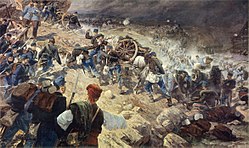 | The Austrian infantry attacking the castle of Sarajevo in 1878 | http://www.old-print.com/cgi-bin/item/J3281827164/search/27-Antique-Print-of-1878-Austrian-Occupation-Bosnia-Castle-Serajevo-Uhlans-Insurgents-Bussovacz | Autor/-in unbekannt Unknown author | Datei:Storming of the castle of Sarajevo 1878.JPG |