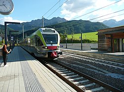 | Stadler Flirt der Südtirolbahnen in der Station Olang-Antholz | Eigenes Werk | Rainerhaufe | Datei:Stadler-Flirt-Pragser Dolomiten.jpg | |