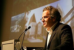 | Oliver Grau during his keynote talk at IEEE ISMAR 2011 in Basel, Switzerland | Photographer Tobias Kammann | Tobias Kammann | Datei:ISMAR11-Oliver Grau.jpg |
