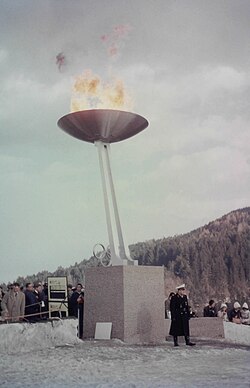 - Das olympische Feuer für die Olympischen Winterspiele 1964 wurde erstmals im antiken Olympia durch einen Hohlspiegel entzündet. Für die Spiele 1952 und 1960 war das Feuer im norwegischen Morgedal, das als Wiege des Skisports gilt, entzündet worden. Das Feuer für Cortina d’Ampezzo 1956 war auf dem Forum Romanum in Rom entfacht worden. Vor 1952 gab es bei Winterspielen keinen olympischen Fackellauf.
