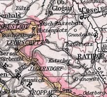 | Opava | Troppau | Opawa (1880: Tropawa) |