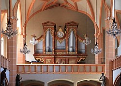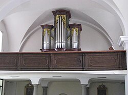 Hauptorgel der Kirche erbaut von Leopold Breinbauer, später durch Chororgel ergänzt.[15] | ||