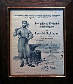 | Urkunde zum Erhalt der Goldmedaille bei der oö. Landes-Handwerker-Ausstellung 1909 in Linz | Eigenes Werk | Christian Pichler/CP (User:Cp4100) | Datei:Goldene Medaille Breinbauer.jpg |