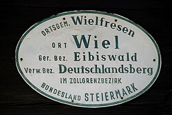 Wielfresen, Steiermark, Österreich: altes Ortsschild der Gemeinde Wielfresen am Gemeindeamt | Selbst fotografiert | Josef Moser | Datei:St Katharina in der Wiel Ortsschild Wielfresen.jpg | |