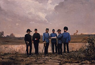 | Das k.u.k. Militärbauwesen. Tafel 28 von 34 Darstellungen der Adjustierung der k.u.k. Armee des Jahres 1895 | Benutzer:Pappenheim erstellt im Heeresgeschichtlichen Museum | Oskar Brüch (1869-1943), Fotorechte liegen beim Heeresgeschichtlichen Museum Wien | Datei:Brüch Uniformserie 28 Militärbauwesen.jpg | |