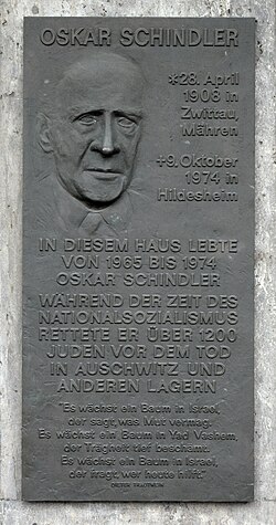 - ↑ Stadtarchiv Hildesheim: Oskar-Schindler-Denkmal. Abgerufen am 11. April 2021.
