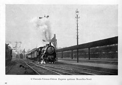 | Ostend Wien Orient express leaving Gare du Nord in the 1920s | "Les chemins de Fer Belges" Commemoration catalog with lots off advertisements off railway industry and products. | The International Publishing Corporation, S.A. Bruxelles | Datei:Gare du Nord oud VO.jpg | |