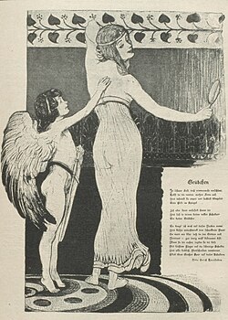| Angelo Jank Illustration zu Otto Erich Hartleben Grübchen in Simplicissimus 1896, Heft 2 | Albert Soergel: Dichtung und Dichter der Zeit : eine Schilderung der deutschen Literatur der letzten Jahrzehnte, 1916 | Angelo Jank | Datei:Angelo Jank Otto Erich Hartleben Grübchen Simplicissimus 1896.jpg | |