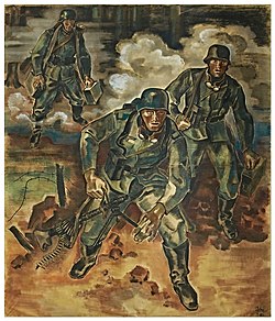 | LMG-Trupp Sprung-vorwärts! , 1940, monumentale Farbkreidezeichnung von Otto Jahn (1900–1945) im Heeresgeschichtlichen Museum Wien . | selbst erstellt | Otto Jahn (1900–1945) | Datei:Otto Jahn LMG Trupp 1940 HGM.jpg |