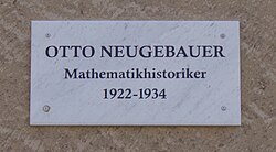 | Göttinger Gedenktafel für Otto Neugebauer (Bunsenstraße 3-5) | Eigenes Werk | NiSaTi | Datei:Göttinger Gedenktafel - Neugebauer, Otto.jpg |