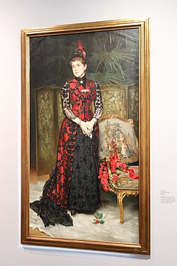 | Porträt von Louise (Luisa) Wagner (1859–1915), geborene Aloisia Josefa Anna Stiffel und 2. Ehefrau von Otto Wagner . Das Bildnis schuf der Genre- und Porträtmaler Hans Temple 1888 und zeigt die Porträtierte in einer noch ganz dem Historismus verpflichteten Umgebung. | Wien Museum | C.Stadler/Bwag | Datei:Hans Temple - Porträt Louise Wagner.JPG | |