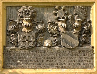 | Bad Radkersburg, Wappentafel im Palais Herberstorff mit Allianzwappen Herberstorff und Liechtenstein von Murau | Eigenes Werk | HfrancH at de.wikipedia | Datei:Palais Herberstorff 015.jpg | |