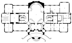 Im neobarocken Vestibül (damals Vestibule oder Flurhalle genannt) standen neben und über den Seitentüren antike Büsten, neben der Haupttür antike Reliefs auf kleinen verzierten antiken Postamenten. Das Vestibule war des Weiteren mit vier italienischen Fresken geschmückt, ideale Architekturstücke vom Anfang des 18. Jahrhunderts.