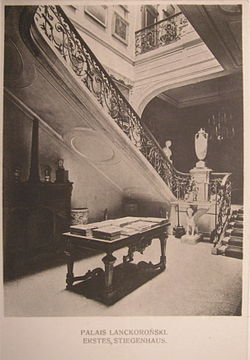 | Image of the Palais Lanckoroński in Vienna, which was the private residence of Count Lanckoroński and his vast art collection, which was open to the public. The image is part of a post-card series that were made specifically for the building and its collection. | Archiv Bezirksmuseum Landstraße | unknown | Datei:Palais Lanckoronski Vienna-16.JPG | |