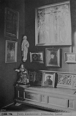 | Image of the Palais Lanckoroński in Vienna, which was the private residence of Count Lanckoroński and his vast art collection, which was open to the public. The image is part of a post-card series that were made specifically for the building and its collection. | Archiv Bezirksmuseum Landstraße | unknown | Datei:Palais Lanckoronski Vienna-22.JPG | |