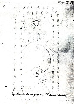 | Berlin - Plan für den Garten des Palais Redern, von Peter Joseph Lenné, um 1835. Bezeichnung auf dem Plan: "Hausgarten des Grafen Rödern in Berlin"; Plangrenzen: Grundstücksgrenzen, Maßstab in Fuß; Zeichner: Lenné eigenhändig; Bleistift und Beschriftung mit Feder; 47,8 x 34,3 cm. | scanned from Peter Joseph Lenné, Pläne für Berlin . Staatliche Schlösser und Gärten Potsdam-Sanssouci 1984 | Peter Joseph Lenné | Datei:Berlin Garten Palais Redern Lenne.jpg | |