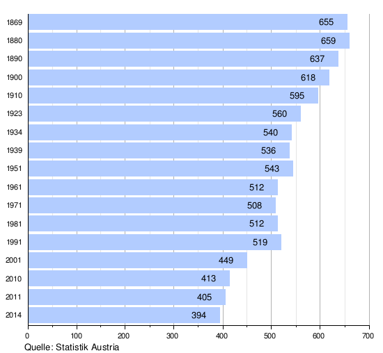 - ↑ Bevölkerungsentwicklung 1869 - 2011. (PDF-Datei; 35 kB) auf: statistik.at