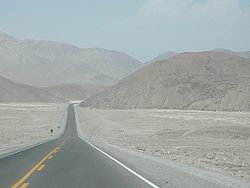 In Nazca (Peru) zweigen von der Küstenstrecke mehrere innerkontinentale Streckenabschnitte (Transversales) ab. Man kann vier Teilstücke unterscheiden: