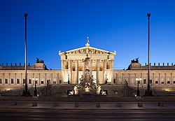 Das Parlamentsgebäude in Wien ist Sitz der beiden Kammern des Österreichischen Parlaments, des Nationalrats und des Bundesrats. Im Gebäude befinden sich drei Sitzungssäle, Repräsentationsräume sowie Büro- und Konferenzräume für die Abgeordneten. Umgangssprachlich wird es zusammenfassend meist als „das Parlament“ bezeichnet. Es wurde von 1874 bis 1883 nach einem Entwurf von Theophil von Hansen für den Reichsrat der im Reichsrat vertretenen Königreiche und Länder, heute auch Altösterreich genannt, errichtet; der Architekt orientierte sich dabei an der antiken griechischen Architektur. Damit ist das Reichsratsgebäude ein dem Neurenaissancestil zuzuordnendes Bauwerk am seit 1956 Dr.-Karl-Renner-Ring benannten Abschnitt der Wiener Ringstraße mit ihren historistischen Gebäuden.[1]