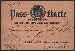 unterzeichnet von Adolf Sievert für die Königliche Polizei-Direction zu Hannover