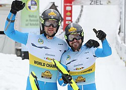 | Weltcuprennen der Doppelsitzer beim FIL-Rennrodel-Weltcup auf der Naturbahn 2021/22 in Mariazell, Österreich | Selbst fotografiert | Sandro Halank , Wikimedia Commons | Datei:2022-02-20 FIL Luge World Cup Natural Track in Mariazell 2021-22 by Sandro Halank–145.jpg | |